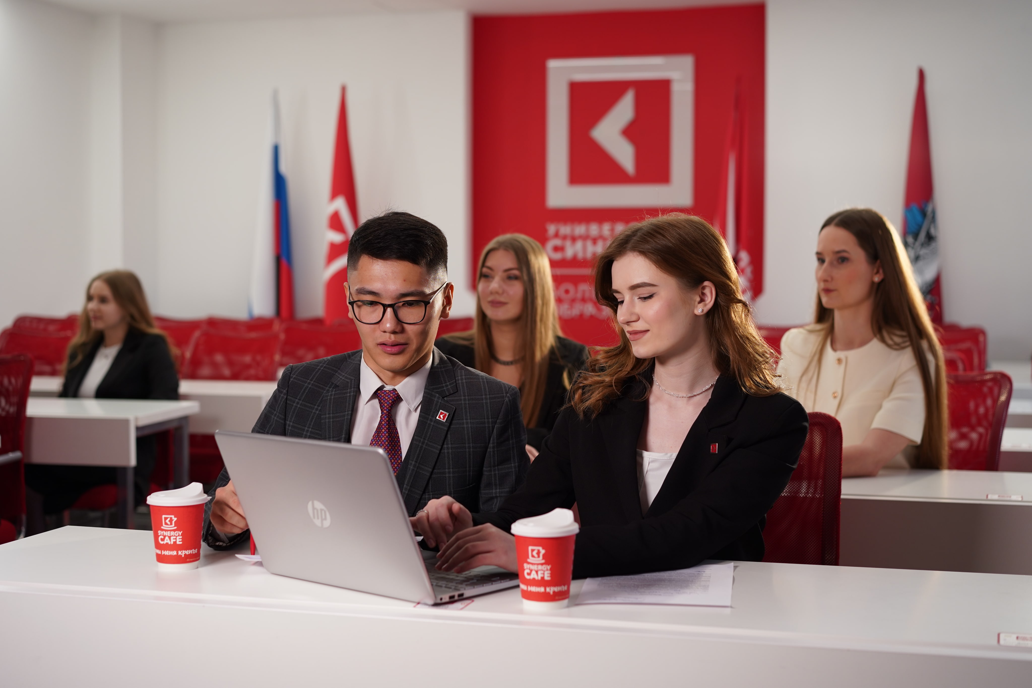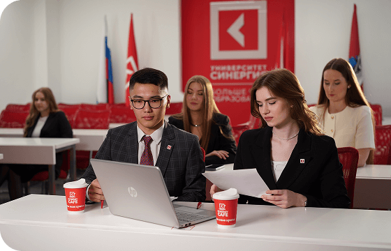 Студенты трудоустраиваются в Корпорацию «Синергия» одновременно с зачислением в университет. Они начинают с рядовых позиций и продвигаются по карьерной лестнице до должности руководителя группы, отдела или целого департамента.